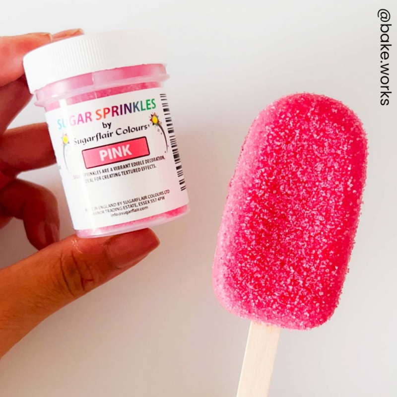 OverzichtGeef je cakepops, cakesicles en chocoladedecoraties een feestelijke finishing touch met de roze Sugar Sprinkles van Sugarflair. Deze fijne suikerstrooisels zorgen direct voor extra kleur, textuur en een speels effect op jouw zoete creaties.