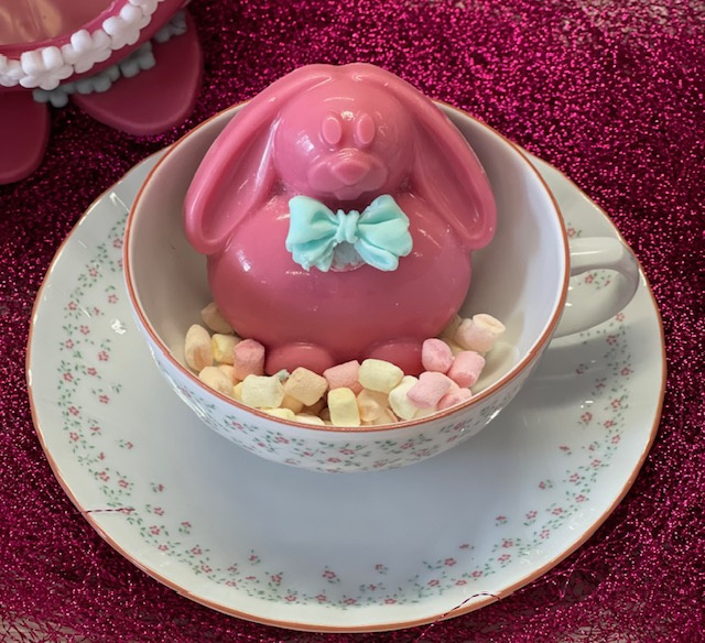 Je maakt 1 3-D haasje per keer in deze mal. Perfect om te vullen met cacaopoeder en marshmallows en te gebruiken als hot chocolate bomb tijdens het Paasontbijt.